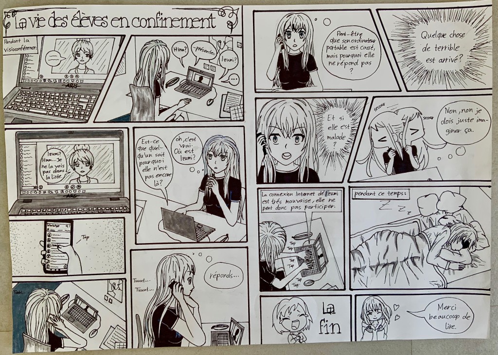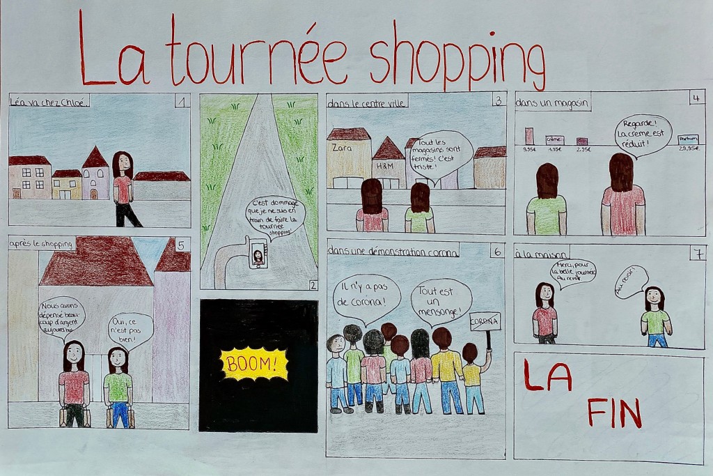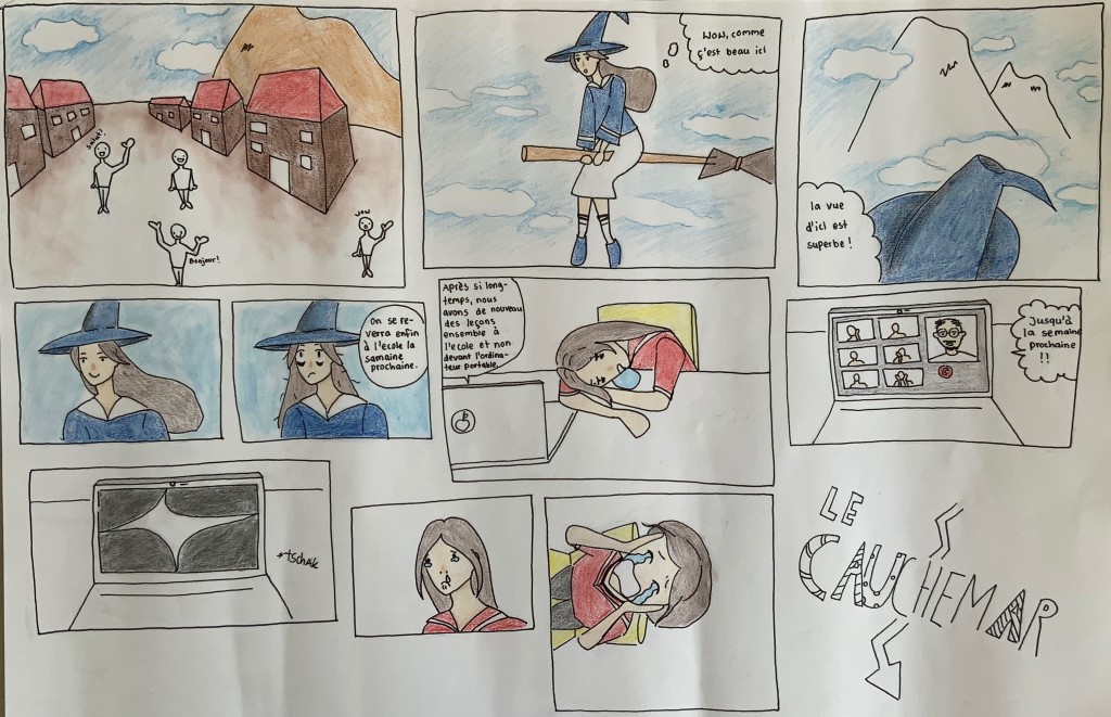 Hierbei mussten wir uns nach einem vorgegebenen Thema richten und den Text in französischer Sprache verfassen. Dennoch waren wir in unserer Geschichte sowie in den Darstellungsmöglichkeiten komplett frei.