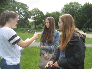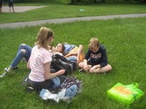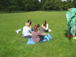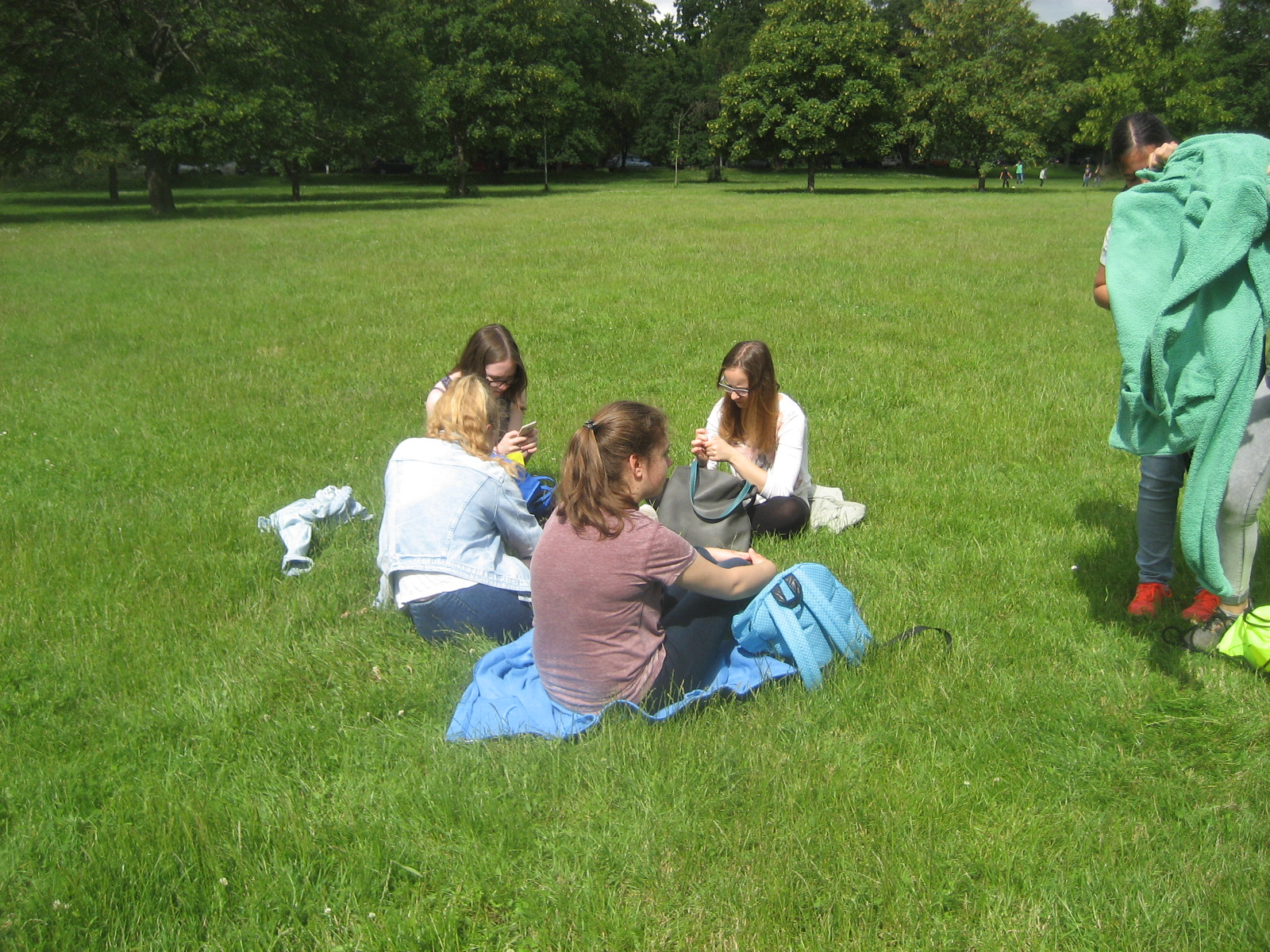 Wieder im Nordpark waren beide Gruppen geschafft und es wurde seitens der Schülerinnen der Kursstufe 11 nachbereitet.